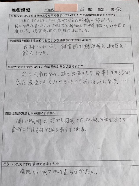 なかなか良くならなかった、体のだるさや、疲れが楽になって本当に良かったですね!
